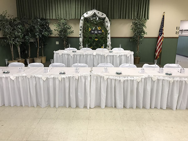 Please choose any of our Party Plans with your hall rental. You are also required to purchase our unlimited beverage plan which includes coffee, tea, sodas, juices, mixers, ice, and cups for $4.00 per person. You may provide your own alcohol/beer/wine which our bartenders will serve. No cash bar permitted.